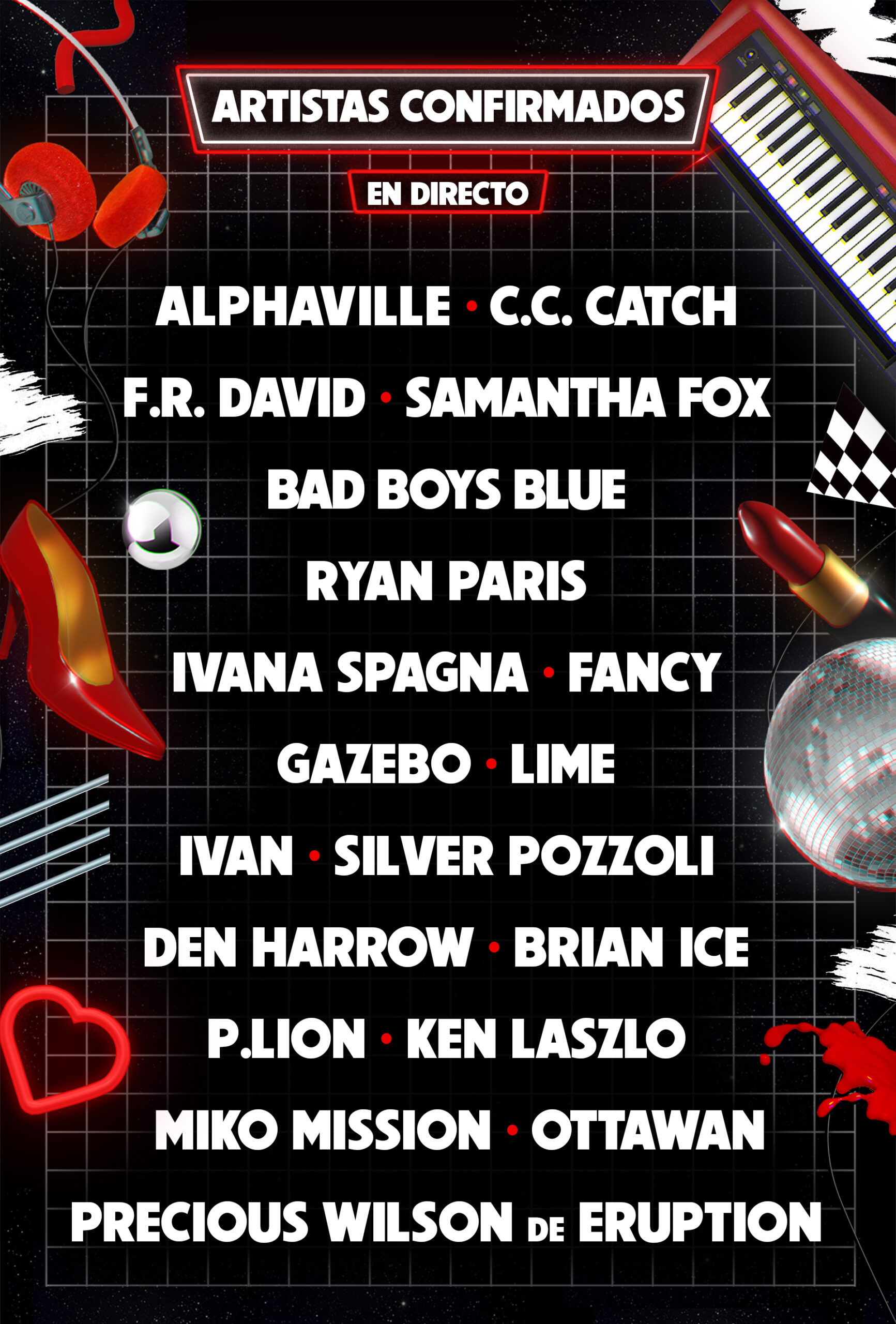 Early Entry: acceso a la Fan Zone donde podrás disfrutar hasta el inicio del show de una Pre-fiesta VIP exclusiva con DJ y servicio de refrescos, cerveza y snacks fríosPersonal de atención VIPAcreditación conmemorativaRegalo edición limitada Discoteca de los 80Asiento numerado de primera categoría con visibilidad premium